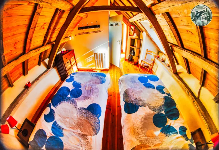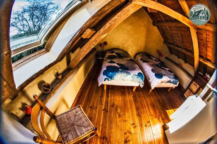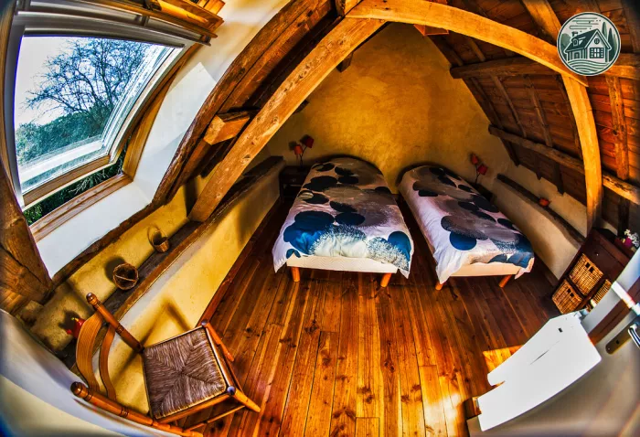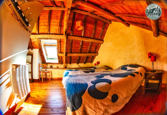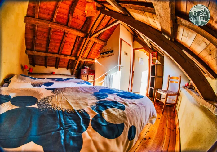 Chambre Ewan – Capacité : 2 voyageurs | Sous charpente | Située à Brennilis (29), Finistère.